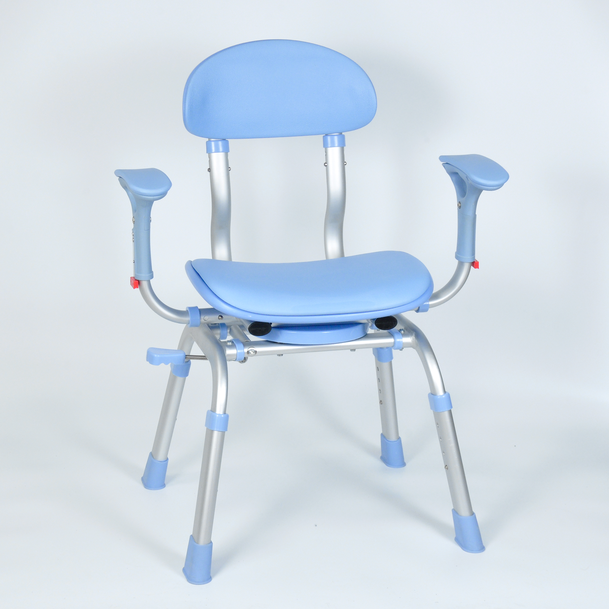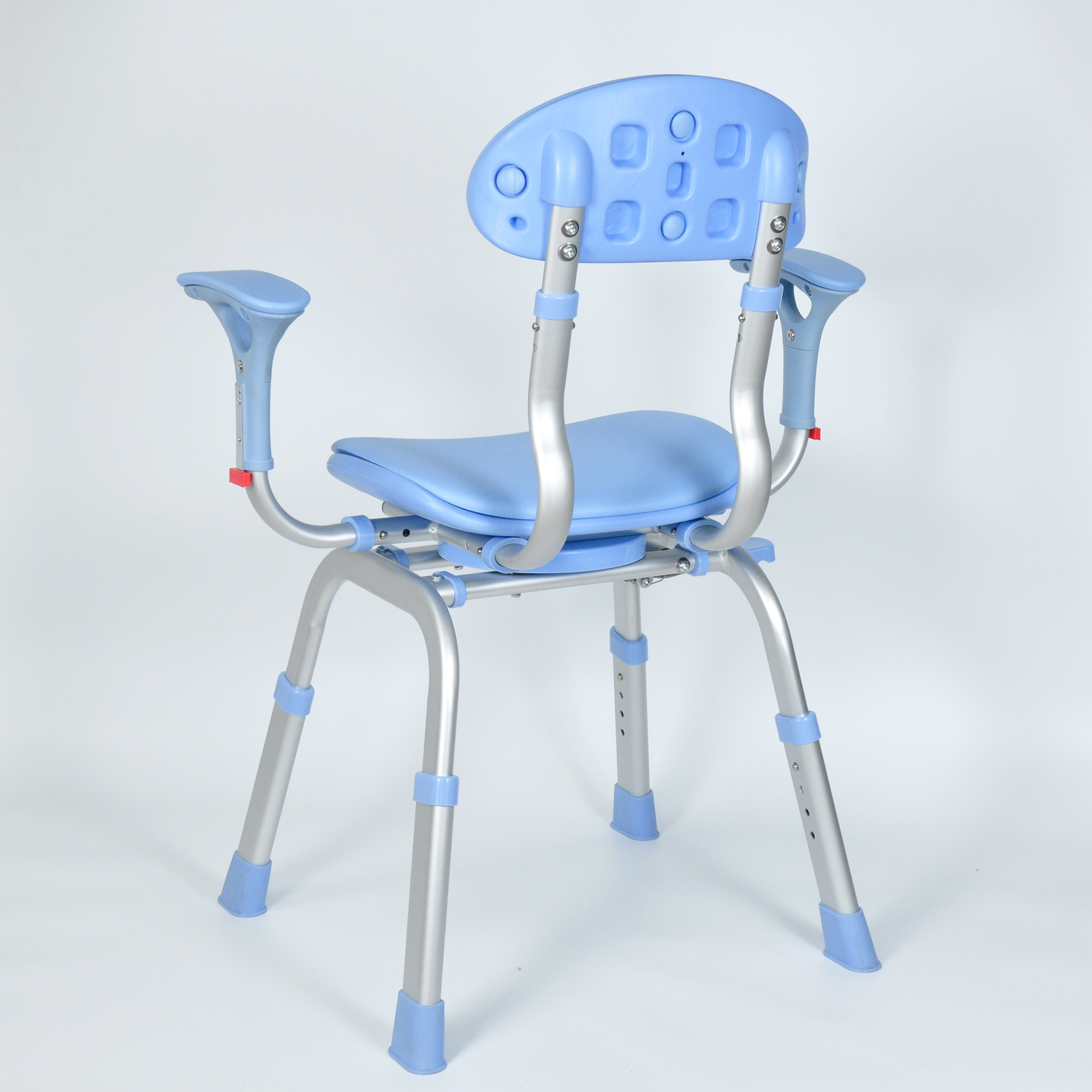 精準關懷,輕松支撐——481A專利沐浴椅 專為老年人、孕婦及下肢行動不便者設計的481A沐浴椅,以360°旋轉座椅與同步式扶手/靠背聯動技術,實現多角度自由調節,兼顧自主操作與護理輔助需求。采用防水轉盤設計,搭配加厚方管腿與雙層防滑底座,確保沐浴及轉移時的雙重穩固。PE吹塑一體成型座椅兼具快速排水與抗菌特性,細節處彰顯人性化關懷。