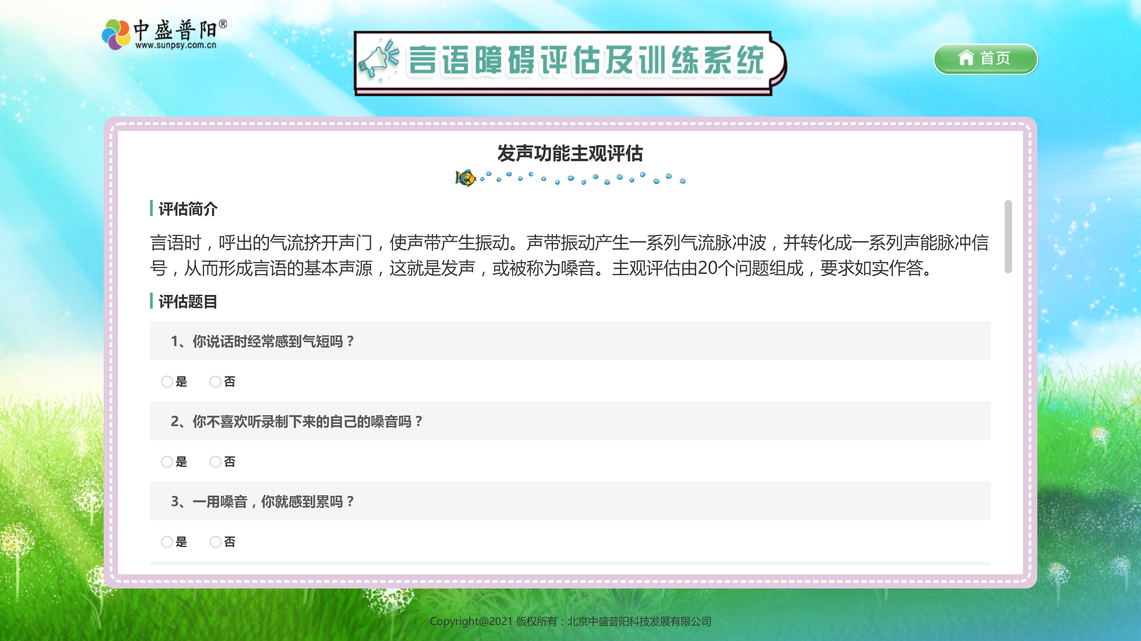 是一款用于言語康復領域的專業評估訓練設備。系統包括醫學測評、康復測評、語音訓練、語言訓練、相關資源、應用工具及實時言語測量等核心模塊。 系統內含醫學及康復兩大評估體系,可實現對呼吸、發聲、共鳴、構音功能的實時測量以及開放式單音節詞、詞語、句子、言語語調的評估測試。同時具有語音波動態顯示與測量等功能,可對言語的呼吸、發聲、共鳴功能進行評估并制定合理的矯治方案。
