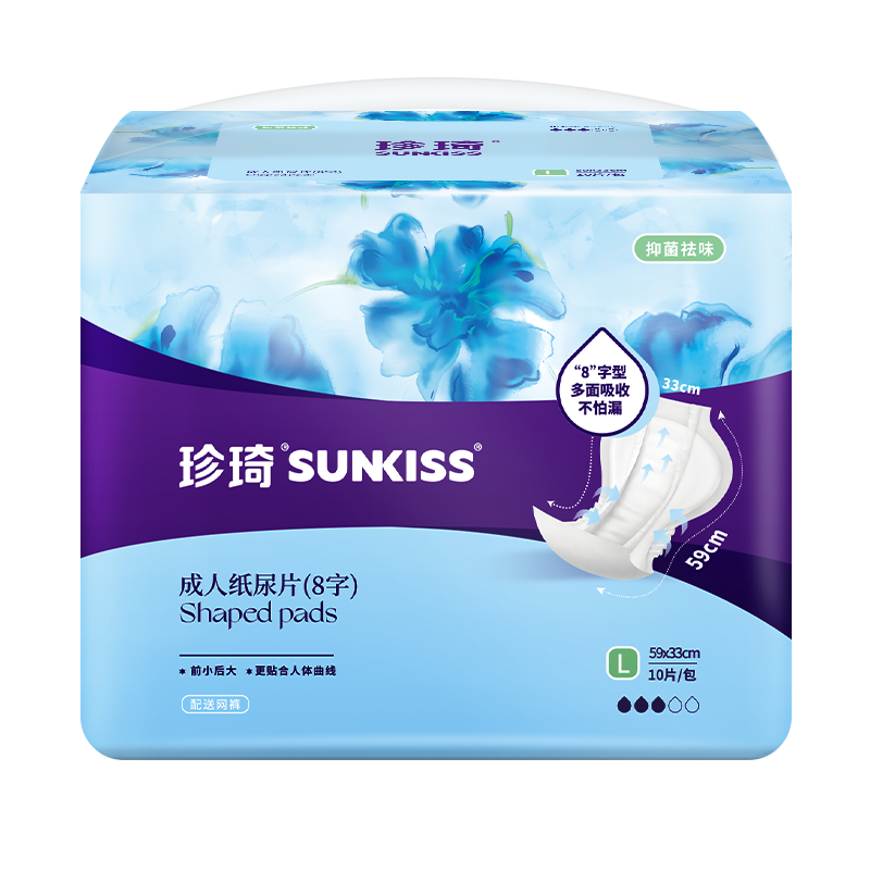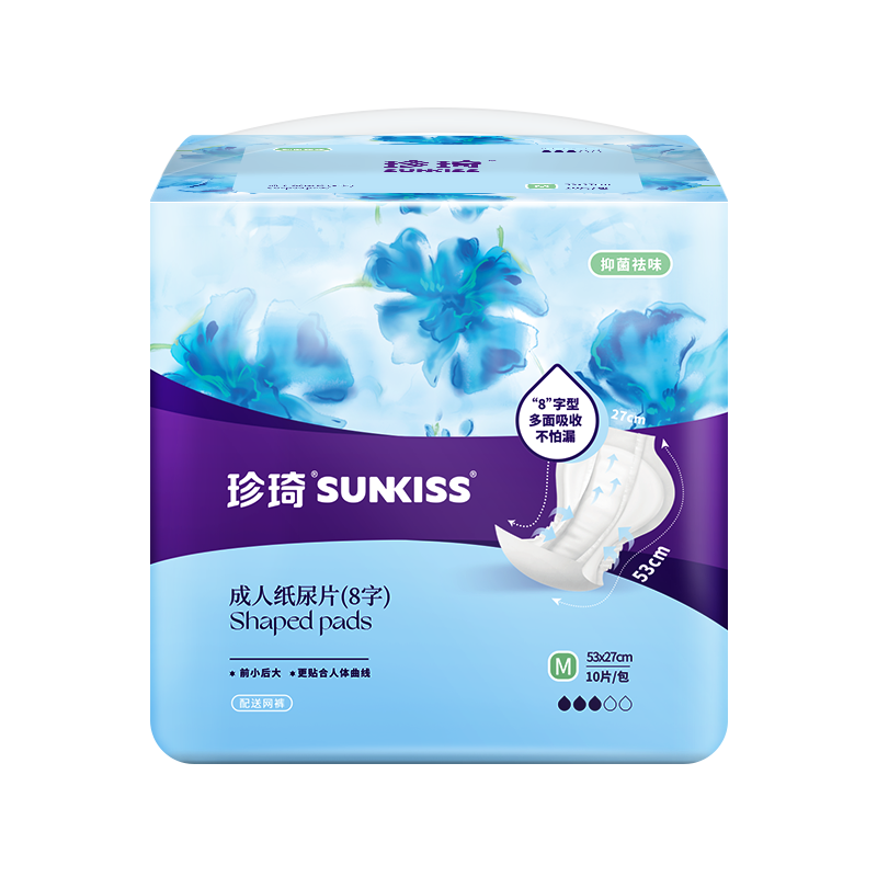 ① 高效吸收芯體:進口優質絨毛漿搭配高鎖水性SAP,雙芯速吸,更高吸收量,更強鎖水性,干爽舒適低回滲 ② 防漏PE底膜:采用全新料PE膜,防潮不悶熱,柔軟不透水,有效防止液體滲漏 ③ 獨特“8”字型設計:前小后大的“8”字型設計,更貼合人體曲線,減少摩擦產生的不適感,吸收效率有效提高 ④ 立體防漏隔邊:獨有彈性立體防側漏隔邊,配合PE底膜,確保整夜安睡