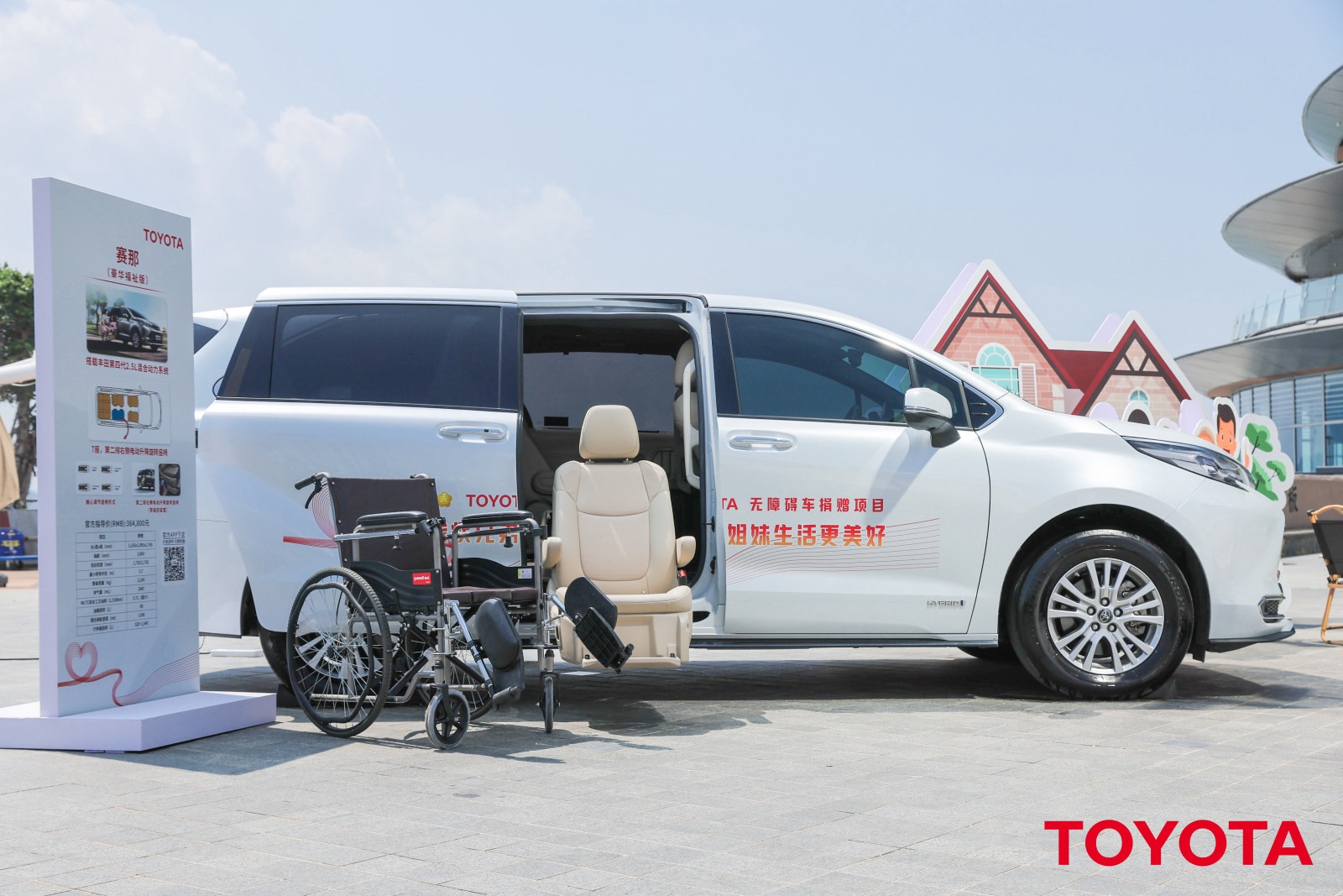 是豐田量產的可以直接從4S店下單訂購的7座MPV福祉車型。第二排右側配備可通過遙控器操控的電動可升降旋轉座椅。搭載2.5L混合動力系統(WLTC工況油耗約5.7L/100km)。下沉式寬大行李箱可容納2臺折疊輪椅,同時車內后部空間可根據需求靈活調整,滿足不同的出行場景。本產品適用于殘疾人、腰腿不便人士、孕婦及老年人等上下車不便人群。去年起先后在北京、蘇州、成都、廣州、海南開啟了福祉車租賃業務。