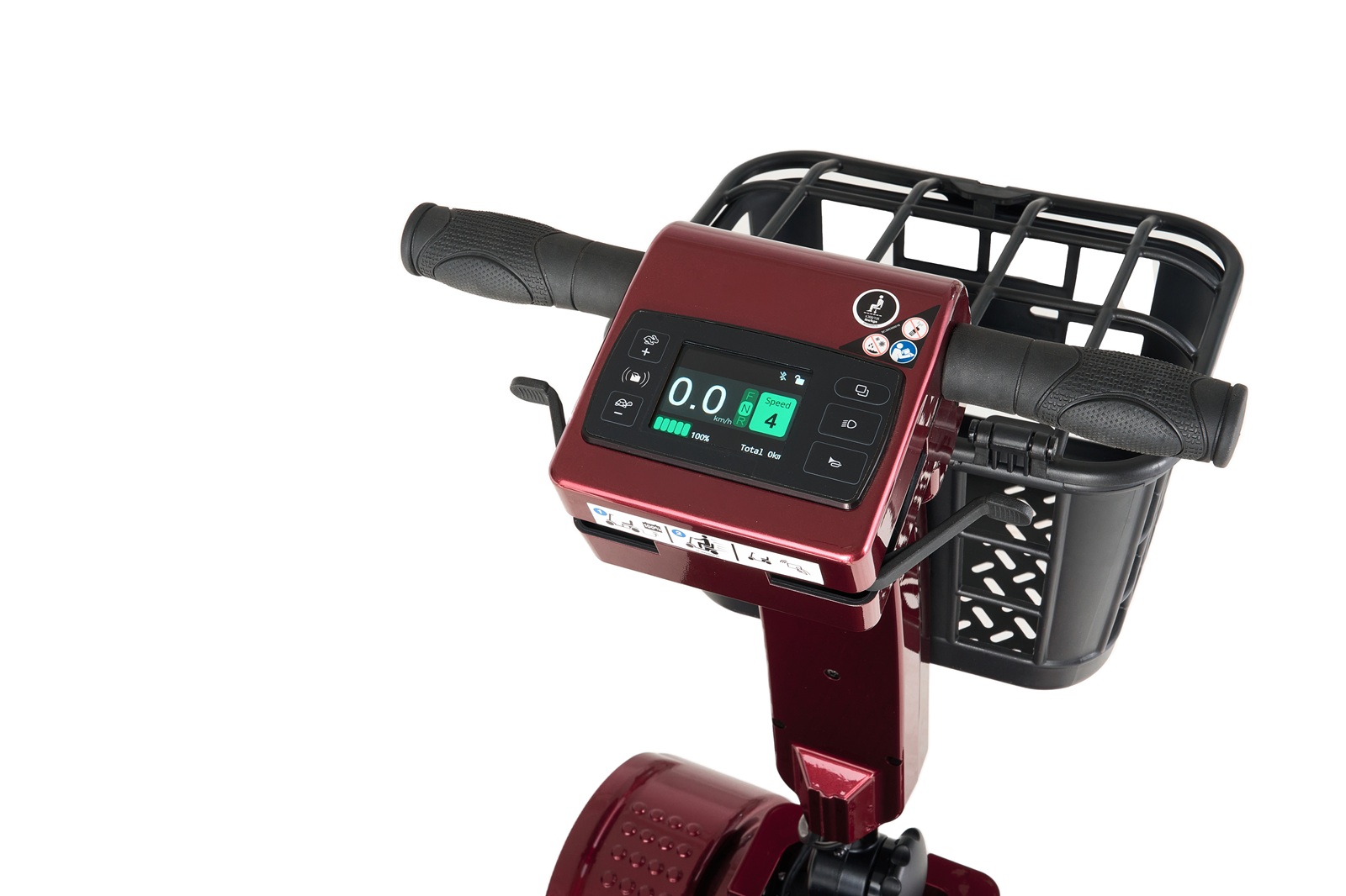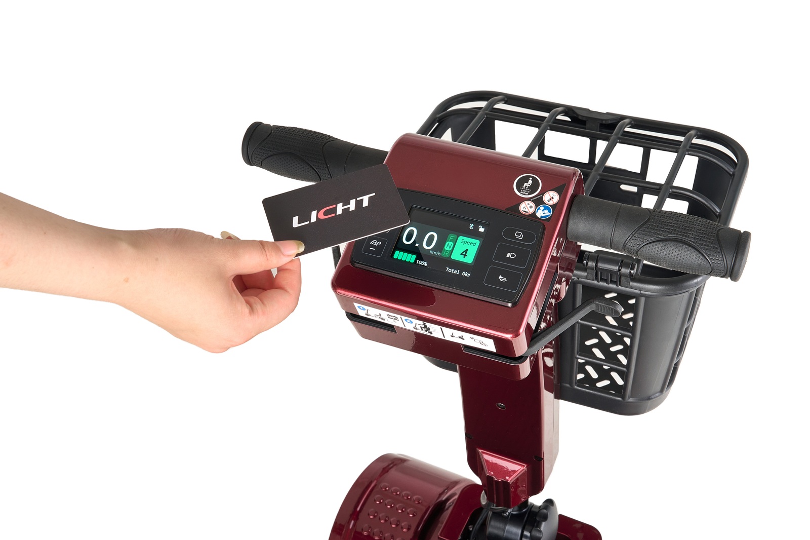 在一代的基礎上,增加了電子顯示控制面板和感應式開關。全新升級的電子顯示控制面板,集成了喇叭按鈕、燈光開關,加速和減速按鈕,以及電池水平和速度信息的電子顯示屏。最簡化的操作設計,用戶無需插入或拔出鑰匙,只需刷一下卡即可離開。藍牙配對后,手機可用于感應電源的開啟和關閉。