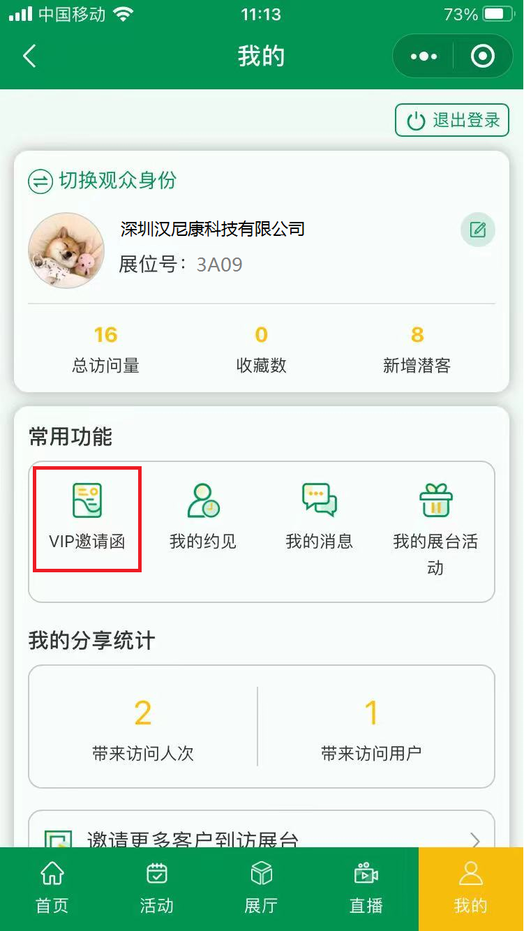 3. 填寫完以上信息后,在小程序“網上展廳”選擇【展商登錄】,登錄后點擊【VIP邀請函】,即可生成貴司的專屬邀請函。