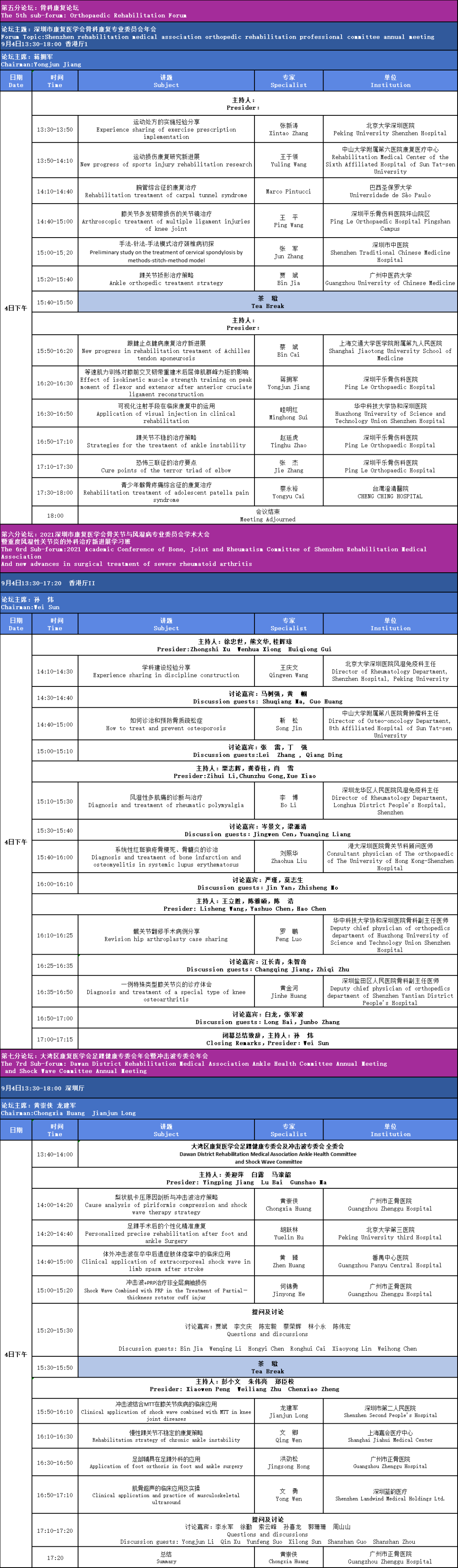 深圳市衛生健康委員會、深圳市殘疾人聯合會、中國醫師協會老年康復專業委員會、中國康復醫學會康復治療專業委員會、中國康復醫學會老年康復專業委員會、廣東省康復醫學會、深圳市醫師協會、深圳市醫學會、深圳市康復醫療質量控制中心、廣東省沖擊波醫學教育與培訓專家委員會