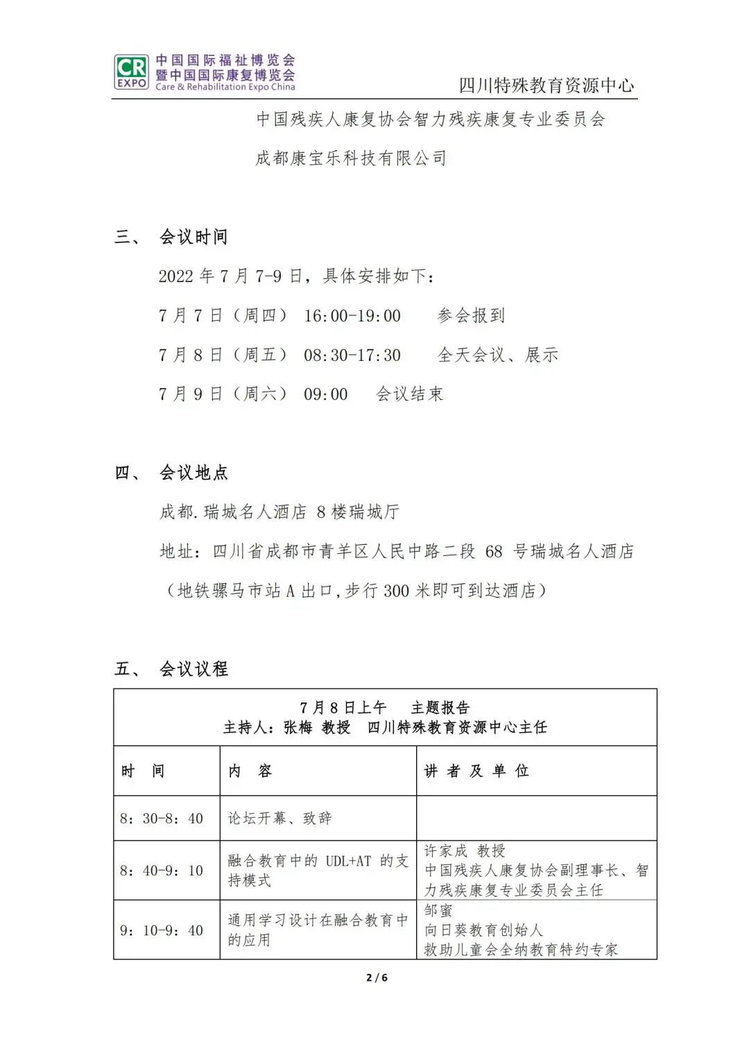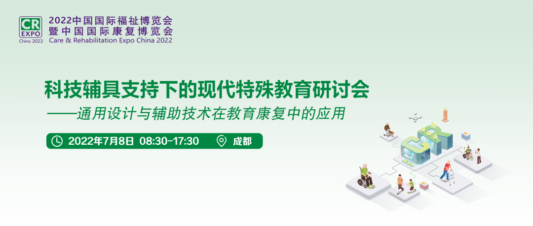 基于此,中國國際福祉博覽會暨中國國際康復博覽會組委會聯合四川特殊教育資源中心、中國殘疾人康復協會智力殘疾康復專業委員會,將于2022年7月8日在成都舉辦“科技輔具支持下的現代特殊教育”研討會,邀請專家學者分享學術和教學研究成果,探討和交流科技輔具在特殊教育領域新理念、新做法和新進展,搭建特殊教育學校、兒童康復機構、兒童康復輔具教具企業的交流對接平臺。會議詳情如下: