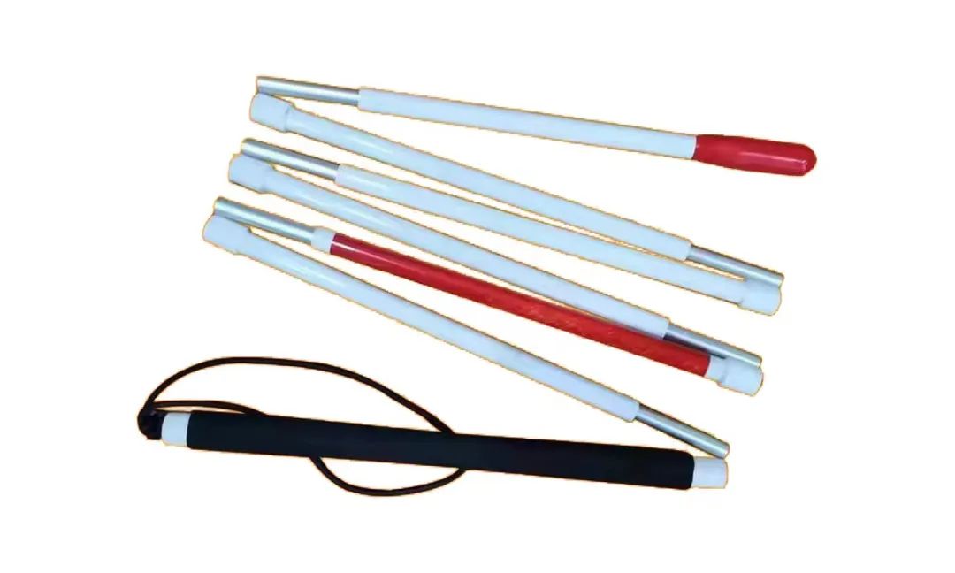 盲杖采用超輕碳纖維材料,僅重100g。手柄結構設計適合盲杖使用中正確握持,手柄上端裝有彈性腕帶,不易從手中滑落。折疊連接部件連接牢固,具有防松動裝置。整杖彎曲15~20°后可自行復原。七節折疊,折疊和打開及使用安全,無卡滯現象。杖尖適合在水泥、瀝青、磚質等硬質路面上使用,易更換。適用于低視力、一/二級盲和全盲人群。