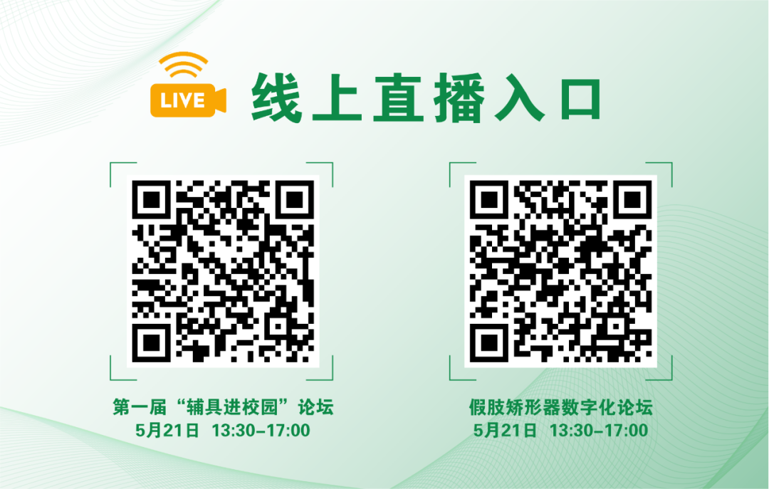 博覽會開幕首天(5月21日)舉辦的第一屆“輔具進校園”論壇、假肢矯形器數字化論壇將安排同步線上直播,直播間入口如下: