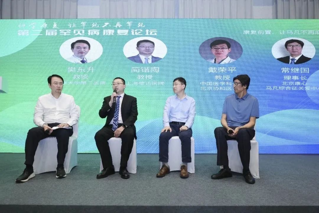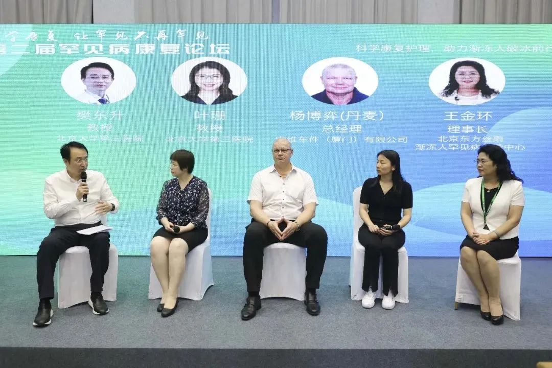 本次論壇分四個板塊,分別由北京大學第三醫院葉珊教授、安維車件(廈門)有限公司楊博弈總經理、北京東方絲雨漸凍人罕見病關愛中心王金環理事長圍繞“科學康復護理,助力漸凍人破冰前行”;上海德達醫院簡鍇陶教授、中國醫學科學院北京協和醫院戴榮平教授、北京康心馬凡綜合征關愛中心常繼國理事長圍繞“康復前置,讓馬凡不再麻煩”;北京大學第三醫院劉小璇教授、中日友好醫院段曉慧教授、千里行CMT互助之家羅玉萍組織者圍繞“醫康融合,讓CMT獲得新生”;中國康復研究中心北京博愛醫院劉松懷教授、太陽語心理專業督導韓笑專家、太陽語罕見病心理關愛中心魏瑞紅理事長圍繞“心理康復,撫慰罕見”等四個方面,進行了充分的論述和研討。