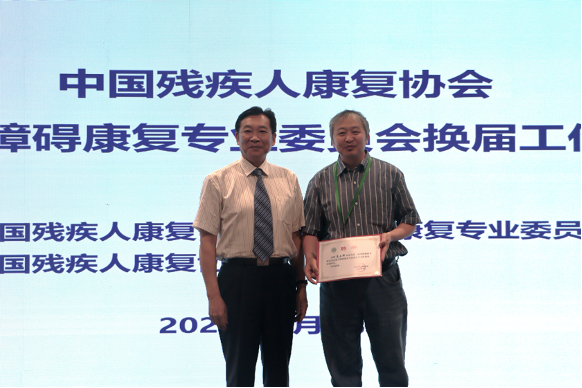 曹躍進秘書長首先為第一屆主任委員孫喜斌教授頒發了榮譽證書并講話。他在講話中指出,在各類殘疾人中,言語語言殘疾人群是語言障礙康復專業委員會的重點服務對象,除此之外,精神殘疾、智力殘疾也普遍存在語言障礙,其康復也是專業委員會的責任。目前,我國語言障礙康復存在人才缺口大、康復體系不完善等諸多問題,希望第二屆專業委員會守正創新、不斷進取,加大學科建設、人才培養、科學研究和社會服務等工作力度,促進我國語言聽力障礙康復專業技術進步,讓更多的殘障者通過高質量專業化的康復服務,得到更多的獲得感和幸福感。