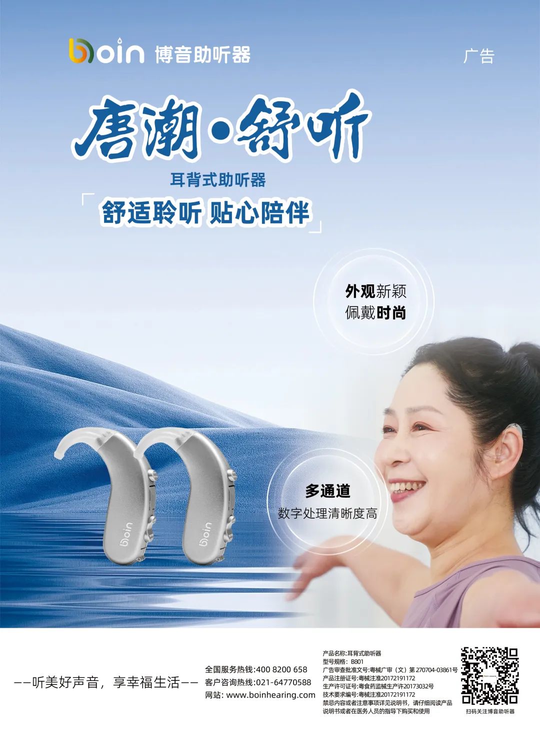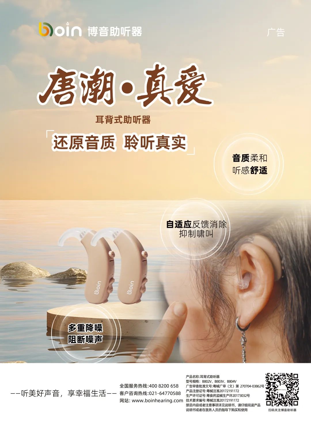 唐潮系列定制機采用全數字云聽平臺,最多擁有20個可調通道,具備瞬時噪音阻斷和風噪阻斷功能,能夠智能識別并應對各種噪聲環境,還可根據您的耳道情況個性化定制外殼,讓助聽器貼合耳道,佩戴舒適、牢固、隱蔽,更有多種機型顏色、提示音可供挑選。