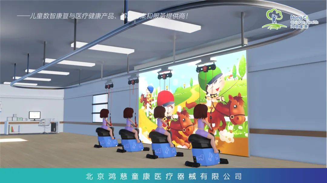 虛擬與現實馬術動態康復訓練系統簡稱“馬術康復訓練系統”,該系統模擬不同狀態下馬匹不同動作的律動及頻率,并結合虛擬的情景互動訓練系統,模仿馬匹行走、奔跑、跳躍、前仰、后翻等動作變化,模擬森林、河流、海邊的自然環境變化,實現快樂狀態下的沉浸式運動康復訓練,針對生理、心理、認知、社會化及行為上有問題的人群進行康復訓練,以達到放松肌張力、提高協調性加速功能恢復進程,對偏癱、腦癱、肢體運動功能障礙、發育遲緩、多動癥、孤獨癥、感覺統合功能的調整增加新的康復元素。
