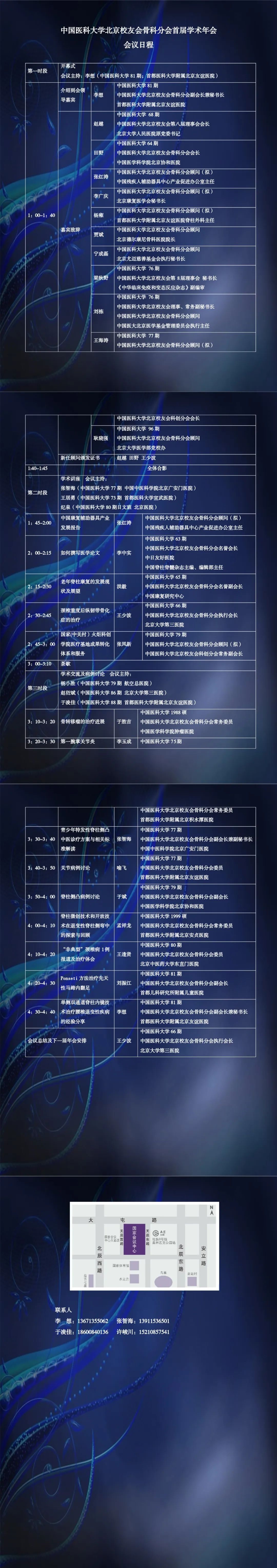 中國醫科大學北京校友會骨科分會會長田野教授、執行會長王少波教授,代表骨科分會全體委員誠摯邀請所有在北京工作的中國醫科大學校友參加本次學術活動,共同為校友會以及骨科分會的發展貢獻智慧和力量。同時也歡迎骨科相關專業人員積極參會(會議日程附后)。大會主委會全體人員期待您的光臨。