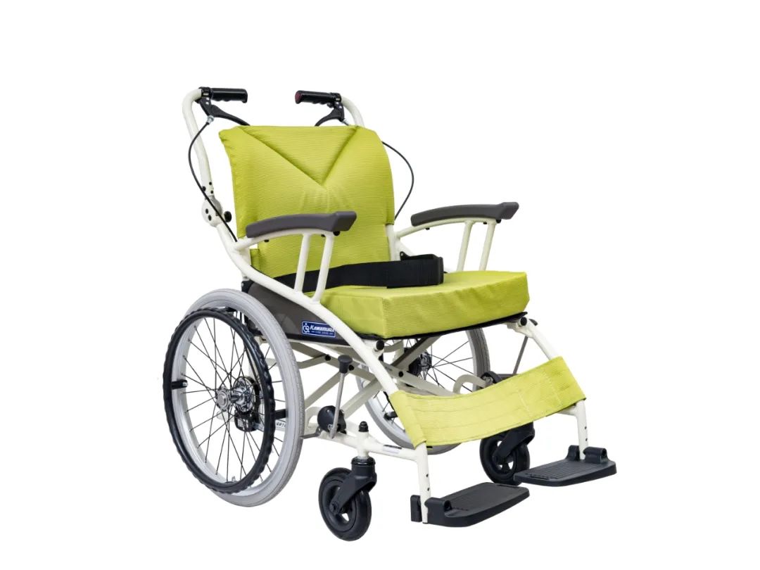 小型、輕便,折疊后易于攜帶。出入口狹窄處亦可輕松通過。折疊后可放入汽車后備箱。前方腳輪使用寬幅發泡胎,外出使用時震動減小,乘坐更舒適。且不易陷入溝槽。車架:鋁合金管焊接組合而成。座墊:PU發泡成型,內有加固襯板,乘坐舒適??勘硥|:采用海綿夾層面料,耐用舒適。安全帶:標配、上下坡時防止傾斜摔倒。扶手:可后掀,便于上下移乘。管材外加發泡管,使用更加舒適。