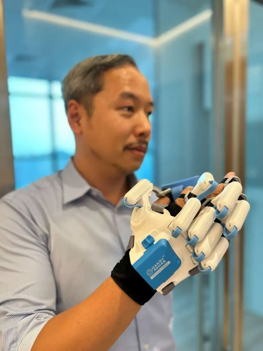HANDYREHAB HandyGlove是一款智能機器人手套系統,已獲得專利并經過臨床驗證,可幫助中風康復患者恢復高達90%的完全運動控制能力。這是一款便攜式輔助設備,能夠幫助殘疾人士完成日常任務,例如拿起一杯水。