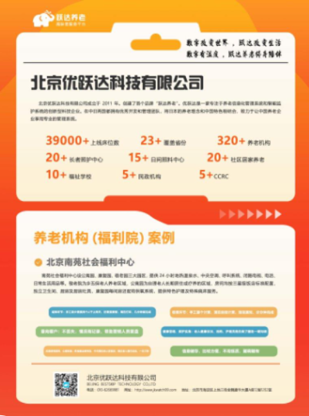 極躍智慧養老綜合管理平臺是在綜合日本養老經驗的基礎上專門為機構、社區、居家環境打造的多元化養老管理云平臺,包括日常的業務流程管理、老人的健康服務管理、移動評估護理系統、家屬關愛系統等。依托上述智慧化平臺,集成適老化智慧硬件及產品,實現了業務流程的標準化、便捷化和服務實施的可視化、實時化,并支持跨省市、跨區域的集團化管理。通過數字化方式,解決企業經營者、管理者、服務提供者、入住者與家屬以及政府等不同角色所關注的核心問題,有效提高養老服務質量,提升老人的生活的質量和尊嚴。