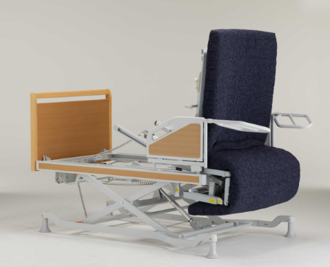 多體位調節電動護理床是為解決「護理人才短缺」和「老人互相照料等護理問題,由日本關蘭舒床有限公司用5年時間研發的電動護理床。這款床可以改變形狀來適用于各種日常生活的場景,從而幫助使用者站起或移乘,有助于支持使用者的獨立牛活和減輕護理者的負擔。一個按鈕可以實現四種姿勢,可以變成椅子,并進一步支持站立。