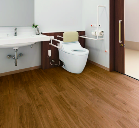 衛生間專用的防滑除臭塑膠卷材,同時具有防污、抗菌、抗病毒高耐久等性能,維護簡單的高創意長壽命塑膠卷材。用途廣泛,適合醫療養老機構、教育機構、商業、辦公等各種設施及住宅使用。