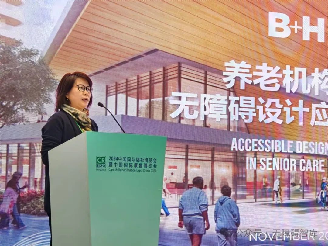 在加拿大無障礙解決方案的中國實踐推介中,加拿大B+H建筑事務所合伙人、醫療設計項目總監林建可介紹《養老機構中無障礙設計應對策略》