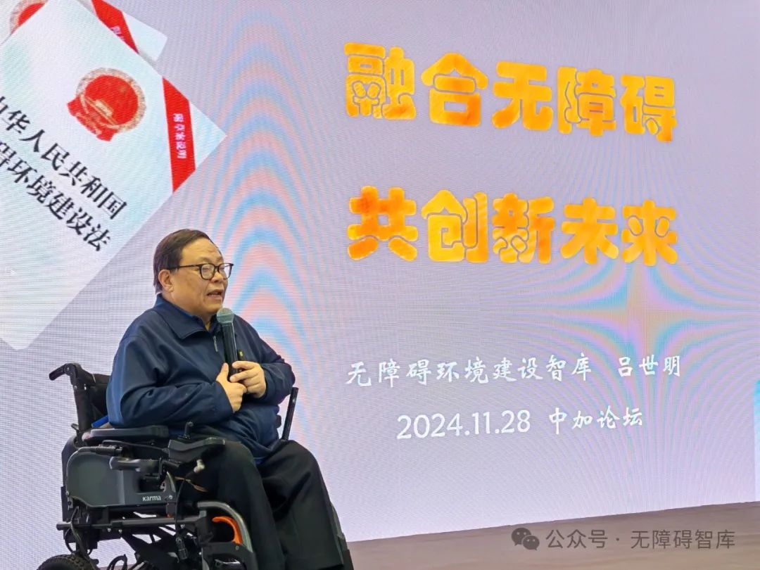 上圖為中國助殘志愿者協會會長呂世明作題為《融合無障礙 共創新未來》的主旨報告