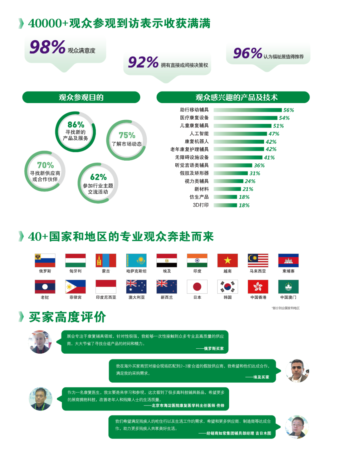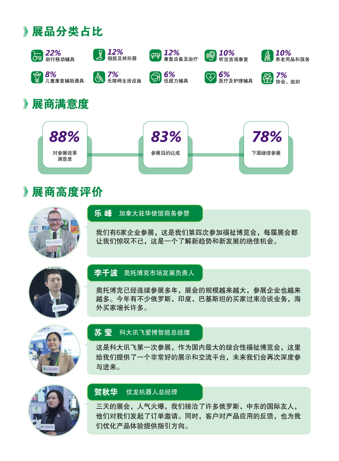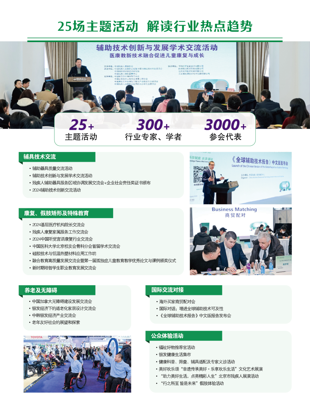助行移動輔具展區 假肢及矯形器展區 醫療器械/康復展區 聽覺言語康復與低視力展區 老年用品及護理/無障礙展區 海外展區