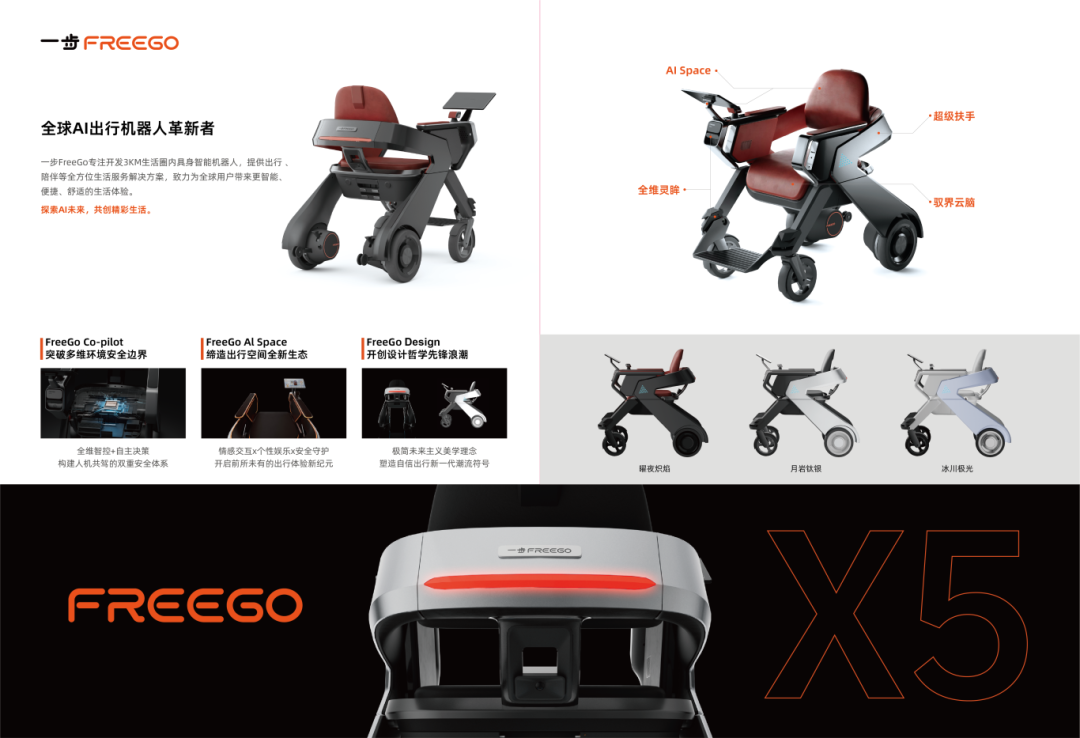 一步FreeGo X5是一款可量產的AI代步機器人,為用戶提供心理、操控、情感三重安全守護,帶來全新的出行體驗。