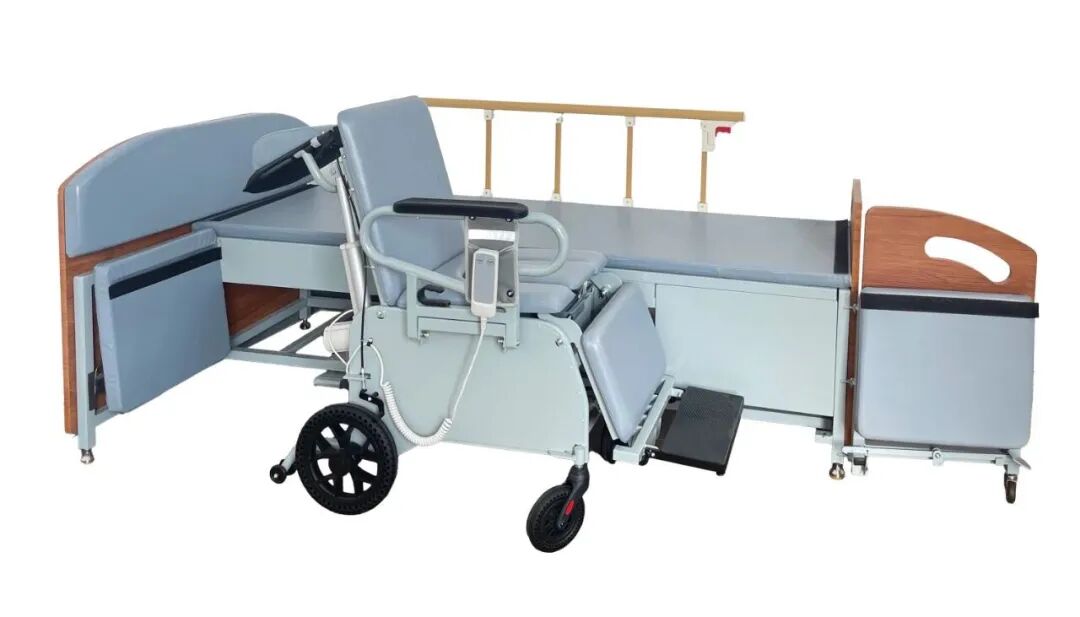 床體部分小尾板可進行90°開啟,方便護理人員輕松分離和組合輪椅與床體。