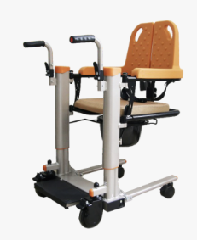 輪椅與床可分離、平躺功能,靠背升起形成輪椅狀態后踩踏下方分離開關即可分離,輪椅部分座墊采用PU皮料,高周波壓合技術,推桿、控制器、電池等都采用IPX6防水等級,整車做到防水,配可伸縮防水頭枕,方便護理人員對使用者進行沖洗、如廁等。