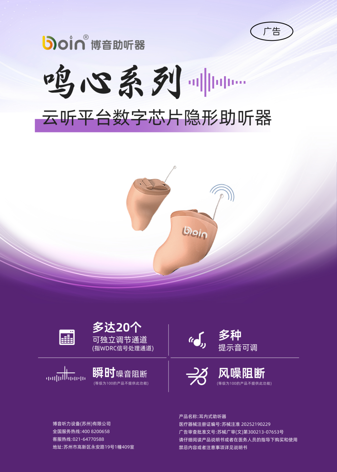 2019年發展至今,已形成包括云聽SiP芯片、醫療級助聽器在內的全鏈產品線,旗下擁有博音、貝聆美、伯朗耳三大品牌和全國加盟服務中心——聽力地球,構建了聽力評估、體驗、售后一站式服務體系,致力于在提供高品質聽力解決方案,打造中國聽力領域國產領導品牌!