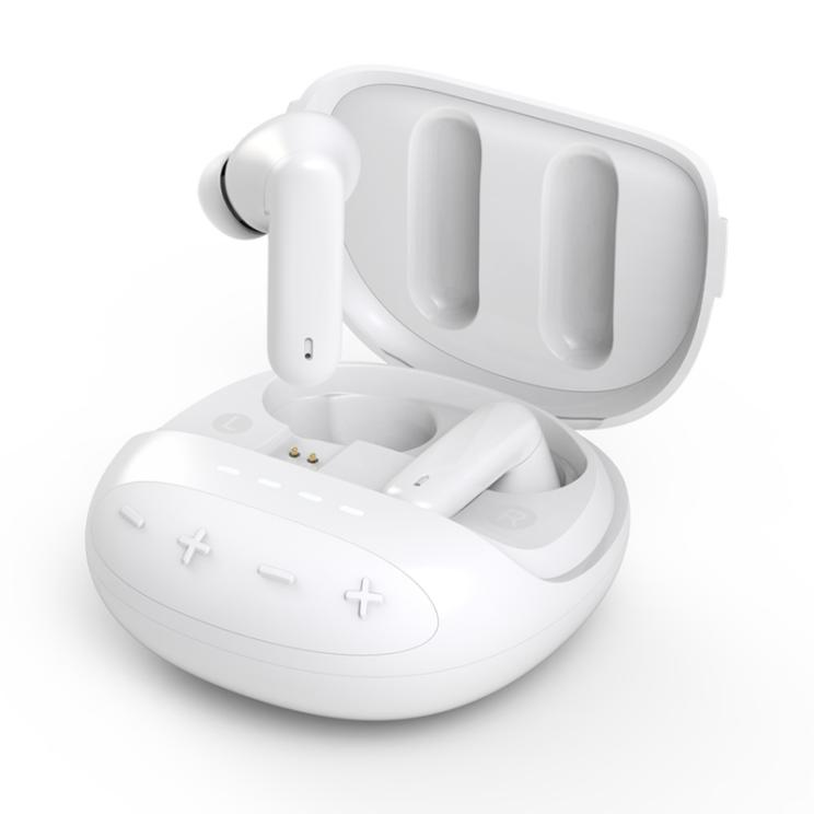 BoPods無線耳機搭載特殊雙磁喇叭單元,帶來澎湃低頻與清澈中高頻,呈現沉浸式現場級聽感;采用人體工學設計,輕盈貼合,長時間佩戴依舊舒適無負擔。同時可以接入AI智能語言翻譯與通話降噪,助力清晰溝通無邊界。耳機單次續航達8小時,配合充電盒可使用長達40小時,Type-C接口便捷充電,全天候陪伴無憂。