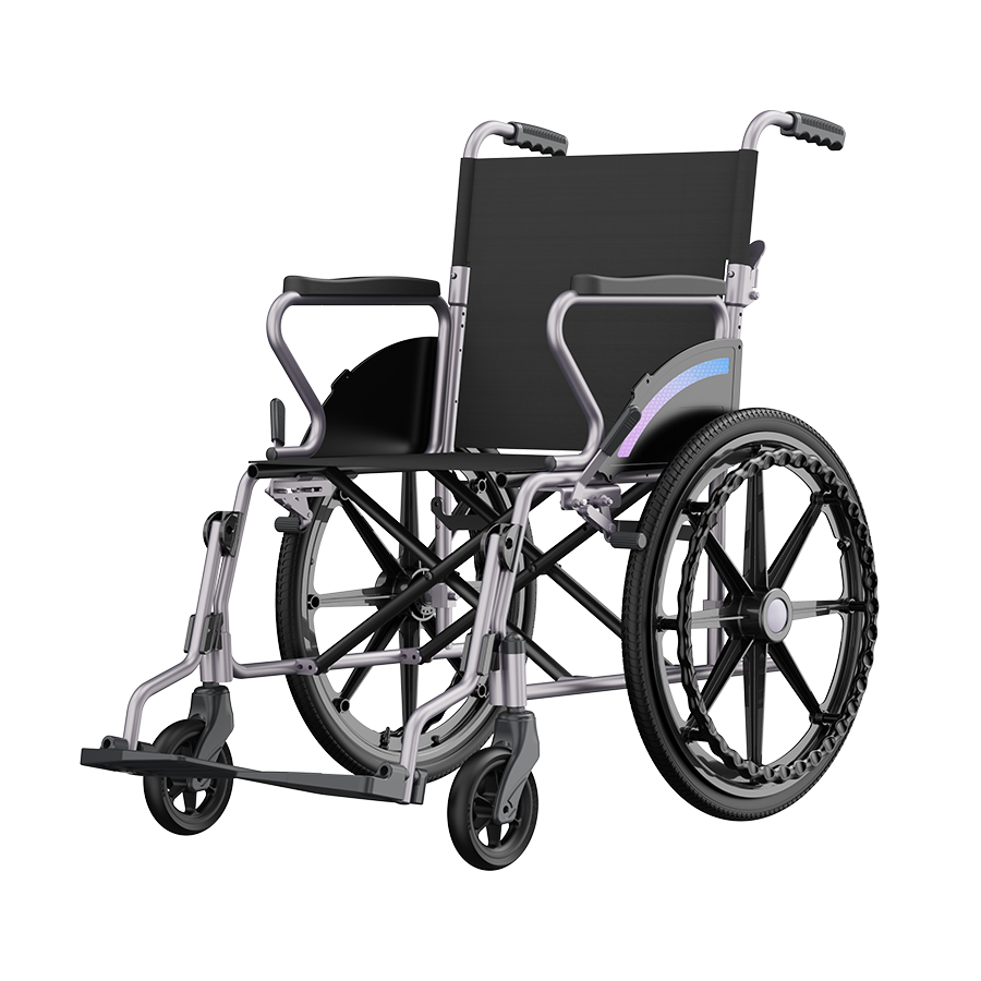 互邦大紫羅蘭手動輪椅,時尚外觀;20寸大輪手推圈,輕松行駛不費力;可輕松折疊,放入轎車后備箱;整車11.6公斤,方便攜帶,折疊收納后小巧。