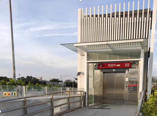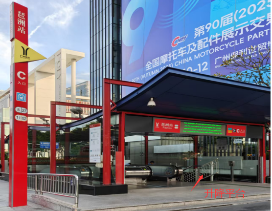 搭乘輪椅升降平臺,從經過地下通道,再從琶洲站C出口。