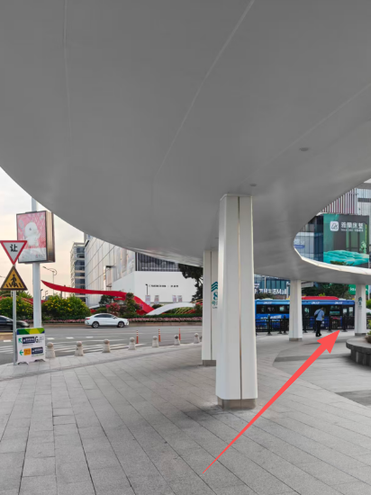 若乘到對向公交車站,輪椅人士請前往琶洲地鐵站A口,使用地鐵升降機,通過地下通道,再從地鐵琶洲站C口出路面,與前文圖示路線一致。