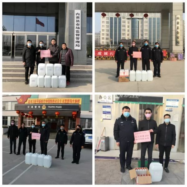 向內黃縣市場監管局、公安局、內黃縣交警大隊、長慶路派出所捐贈醫用酒精、84消毒液