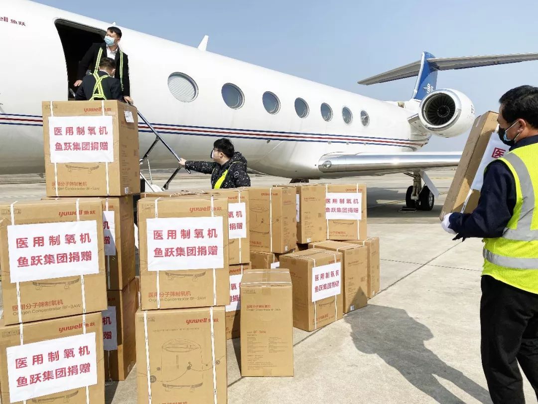 隨著武漢確診病例的急速攀升,醫院氧氣供應量也面臨著緊缺。不到24小時,魚躍再次向武漢捐贈100臺制氧機。為了爭分奪秒,還啟動了集團商務飛機運送方案,調配機場、航線、物流等多方資源,僅2小時就成功抵達武漢。