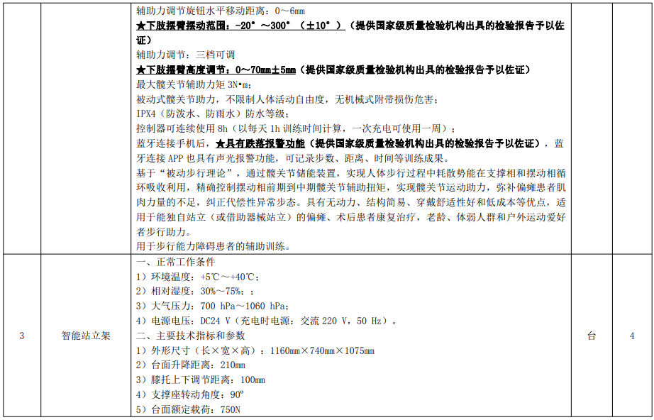 采購需求:殘疾人輔助器具(具體要求見下表)