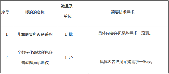 項目名稱:廣西全數字化高端彩色多普勒超聲診斷儀、兒童康復科設備采購