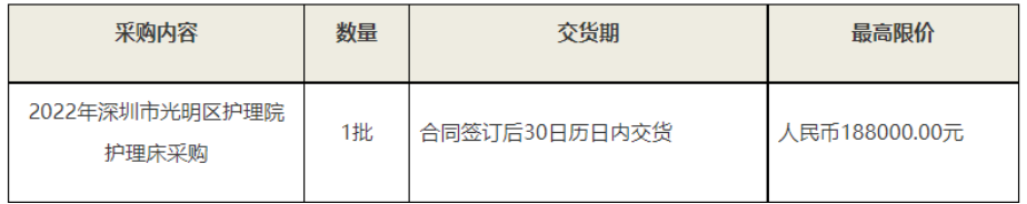 項目名稱:2022年深圳市光明區護理院護理床采購