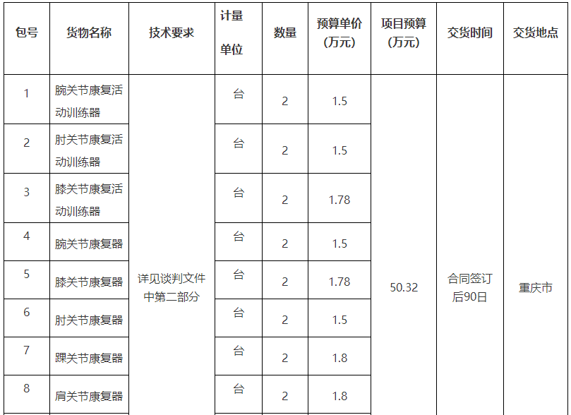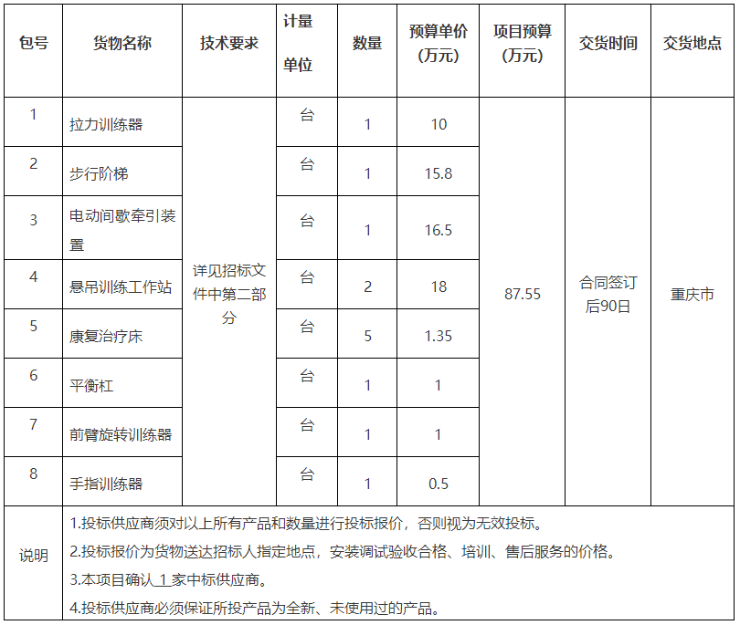 項目名稱:重慶市某單位康復訓練器一批招標公告(2022-JL13(03)-W10327)