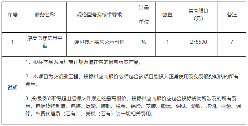 項目名稱:福建省漳州市某醫院關于康復醫療信息平臺項目的公開招標公告