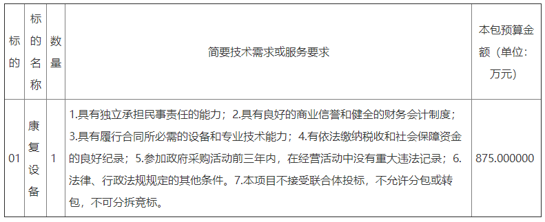 項目名稱:福建醫科大學附屬協和醫院康復設備一批采購項目公開招標招標公告