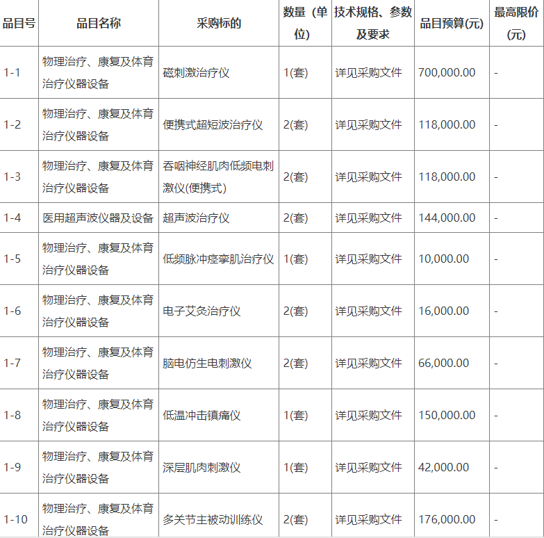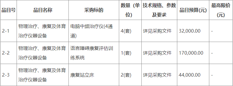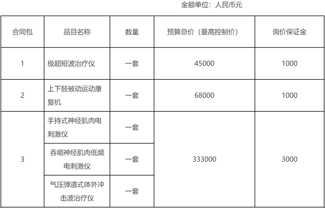 粵北第二人民醫院康復醫學科設備采購項目詢價公告