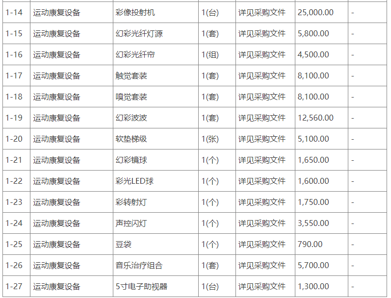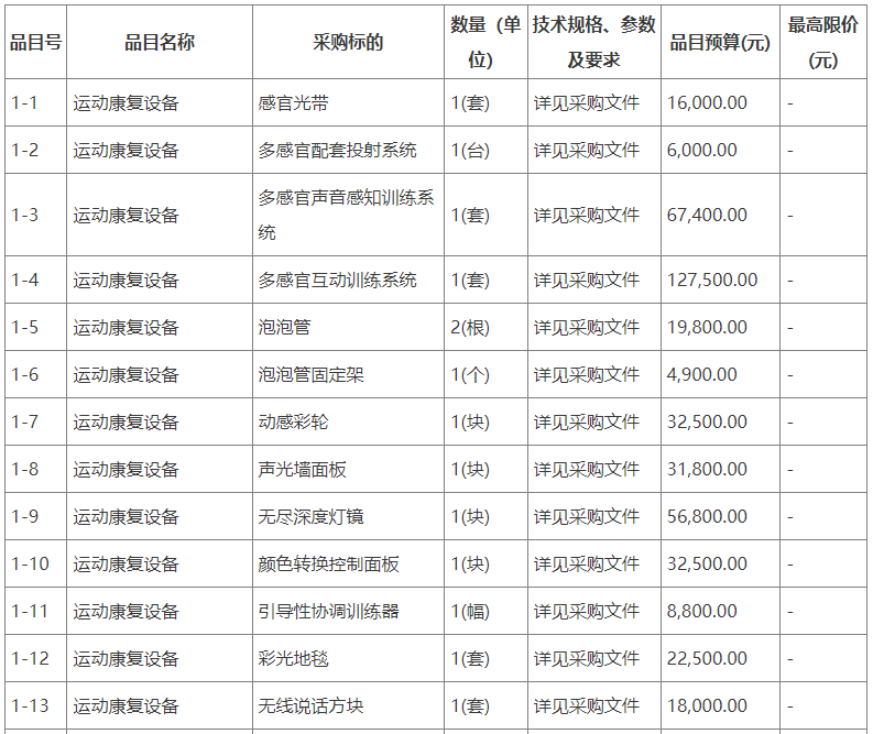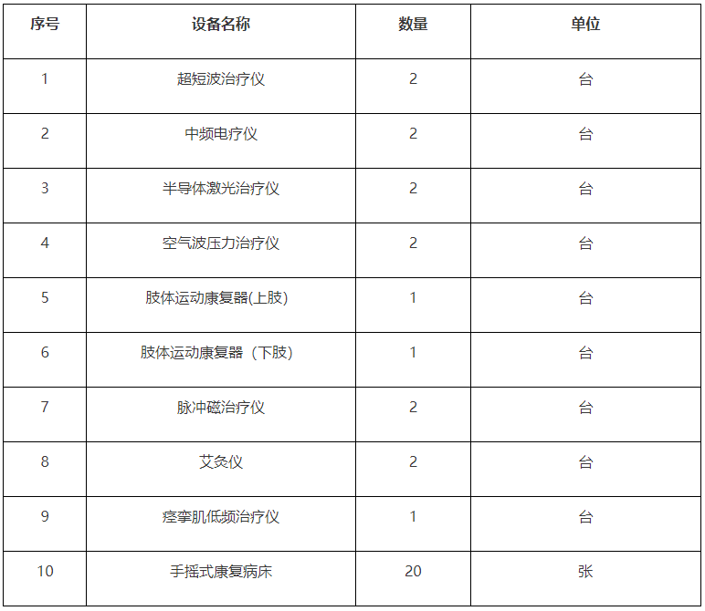 采購需求:運動康復、作業治療、言語吞咽治療、物理因子治療、傳統康復、疼痛科、產后康復等設備的采購安裝調試及相關伴隨服務。
