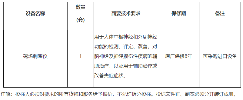 北京醫院康復醫學科購置磁場刺激儀項目公開招標公告