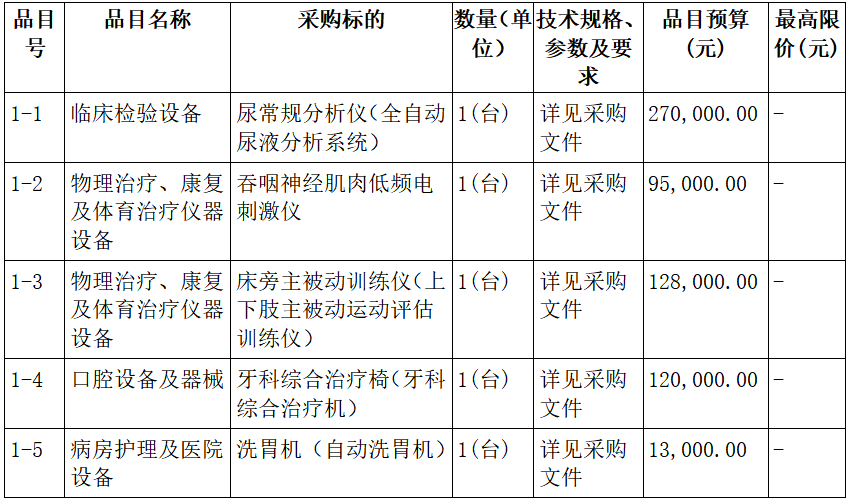采購需求:采購體外除顫監護儀、急救轉運呼吸機、心電圖機、電解質分析儀、紅外光灸治療儀、吞咽神經和肌肉電刺激儀、語言障礙康復評估訓練系統、抽屜式臺階、踝關節訓練板、頸腰椎牽引系統、全自動量子點熒光免疫分析儀、注射泵、吸痰器、防護服等醫療設備