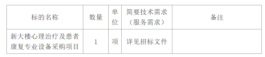 新大樓心理治療及患者康復專業設備采購項目招標公告(重新采購第2次)