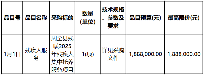 合同包1(周至縣殘聯2025年殘疾人集中托養服務項目一標段):