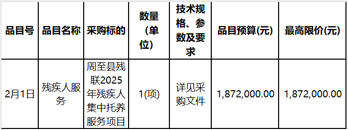 西安市周至縣殘疾人聯合會(本級)周至縣殘聯2025年殘疾人集中托養服務項目(二次)招標公告