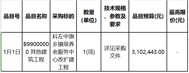合同包1(科左中旗鄉鎮級養老服務中心改擴建工程):