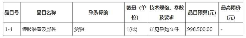 四川省八一康復中心(四川省康復醫院)假肢裝置及附件招標公告