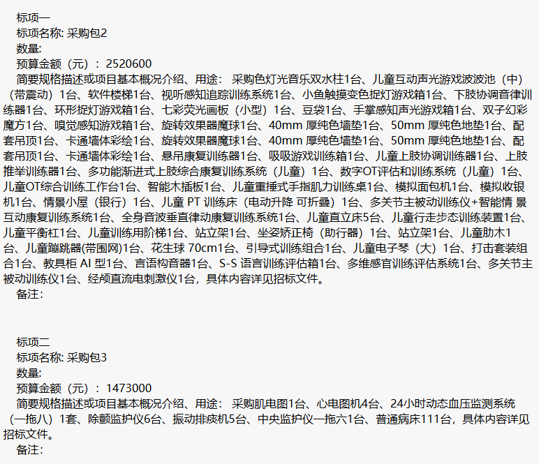 采購需求:上肢智能反饋訓練系統等設備采購,具體內容、主要規格等詳見招標文件第三章采購需求。