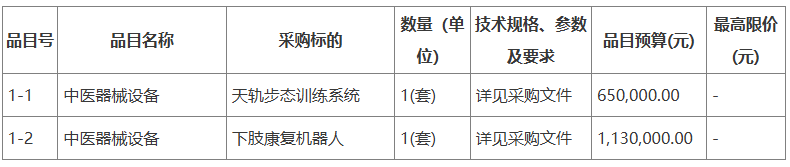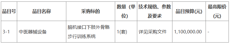 廣州醫科大學附屬中醫醫院天軌步態訓練系統、下肢康復機器人、認知語言康復訓練平臺、腦機接口下肢外骨骼步行訓練系統采購項目公開招標公告